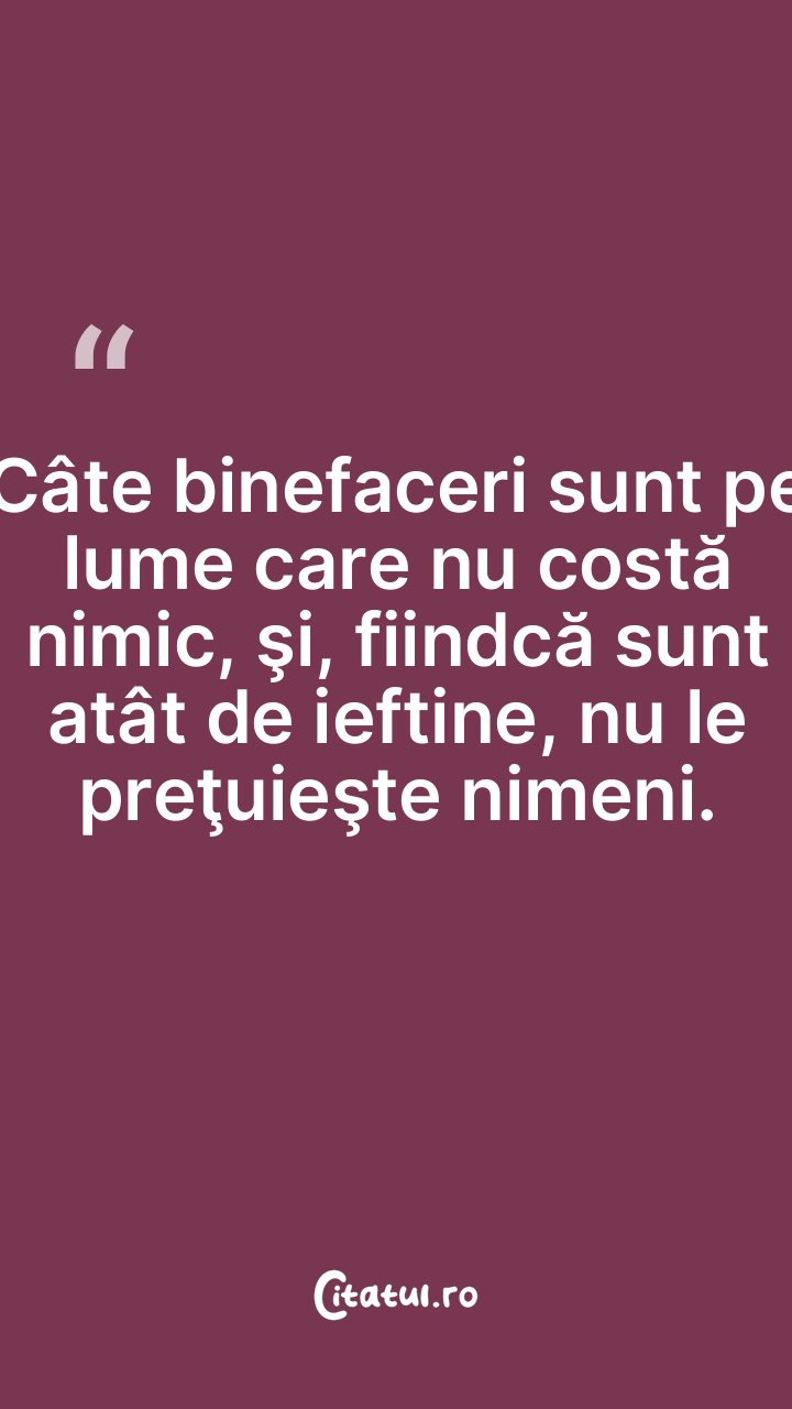 Câte binefaceri sunt pe lume care nu costă nimic, şi, fiindcă sunt atât de ieftine, nu le preţuieşte nimeni.