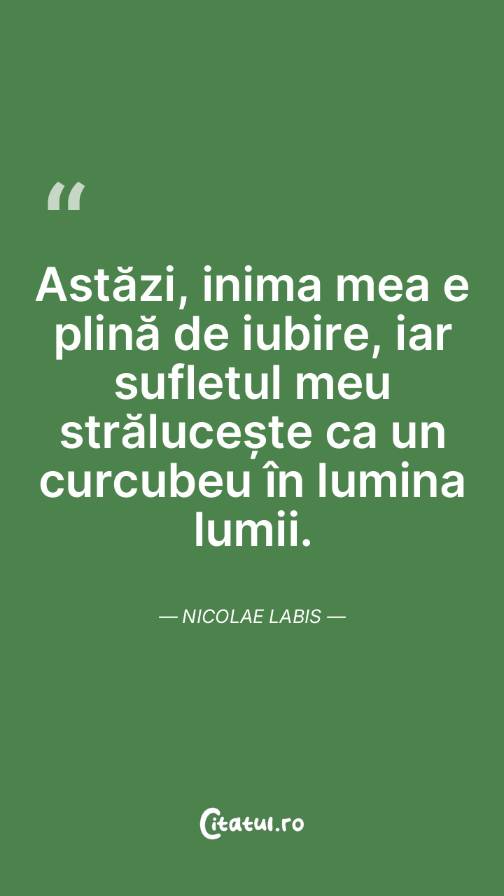 Astăzi, inima mea e plină de iubire, iar sufletul meu strălucește ca un curcubeu în lumina lumii. Nicolae Labis
