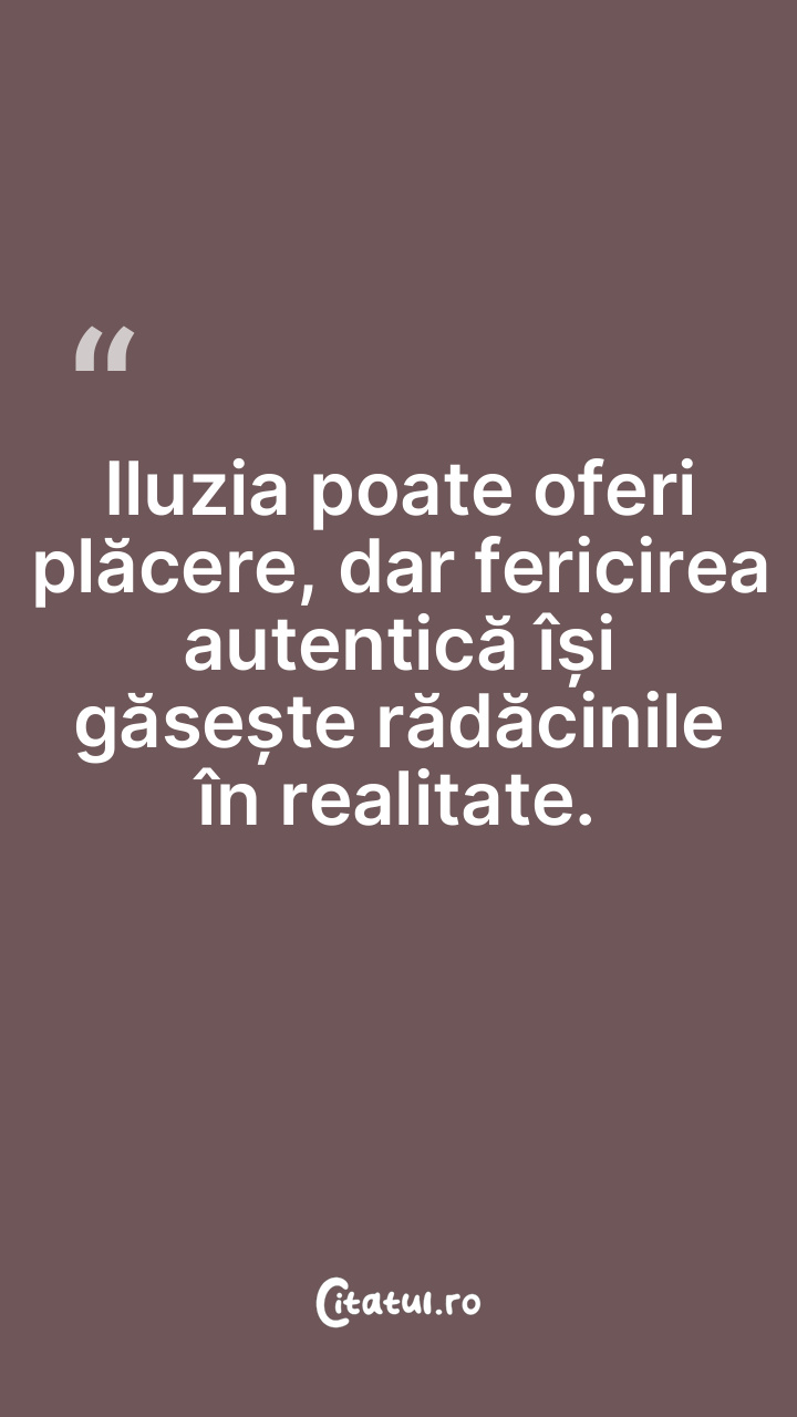 Iluzia poate oferi plăcere, dar fericirea autentică își găsește rădăcinile în realitate.
