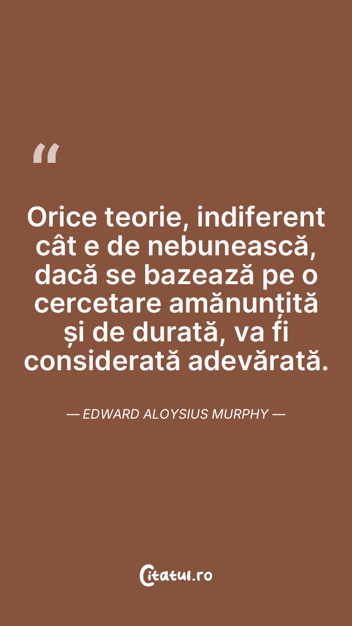 Orice teorie, indiferent cât e de nebunească, dacă se bazează pe o cercetare amănunțită și de durată, va fi considerată adevărată. Edward Aloysius Murphy