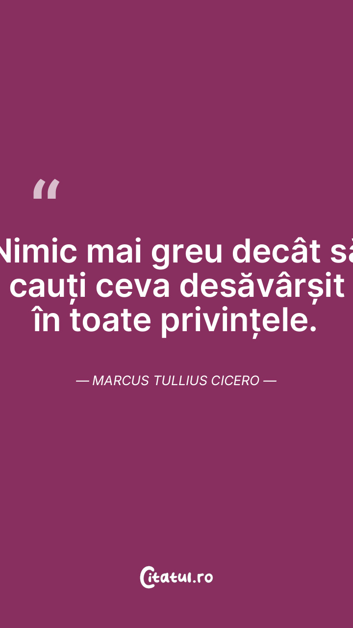 Nimic mai greu decât să cauți ceva desăvârșit în toate privințele. Marcus Tullius Cicero