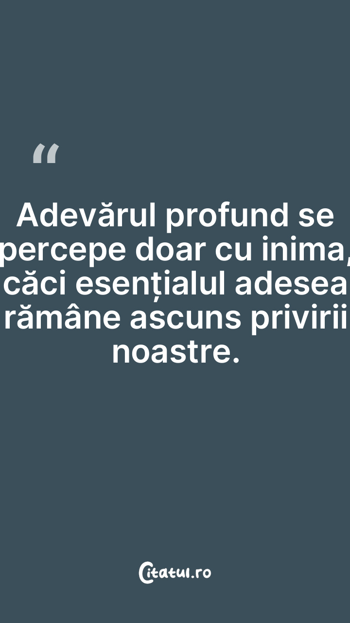 Adevărul profund se percepe doar cu inima, căci esențialul adesea rămâne ascuns privirii noastre.