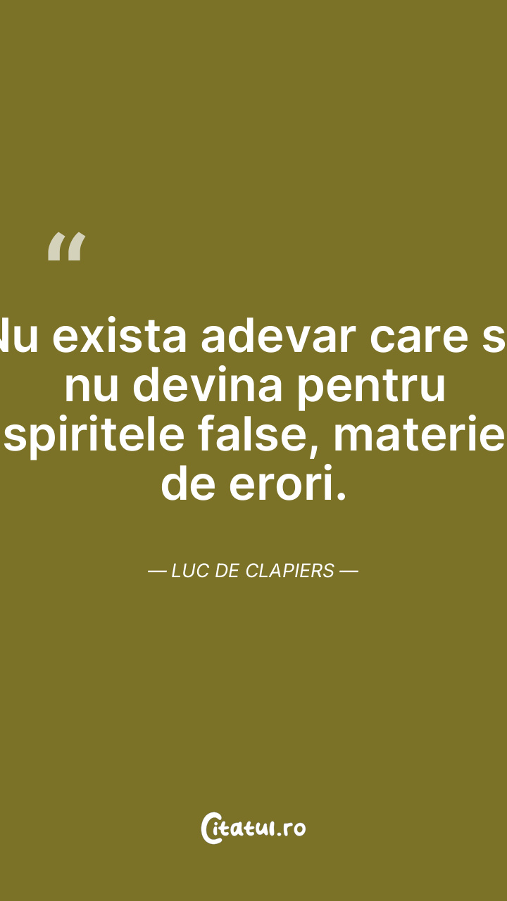 Nu exista adevar care sa nu devina pentru spiritele false, materie de erori. Luc de Clapiers