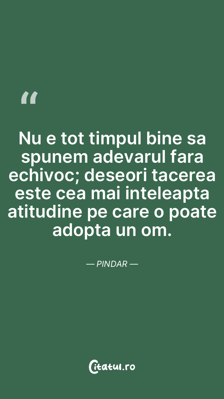 Nu e tot timpul bine sa spunem adevarul fara echivoc; deseori tacerea este cea mai inteleapta atitudine pe care o poate adopta un om. Pindar