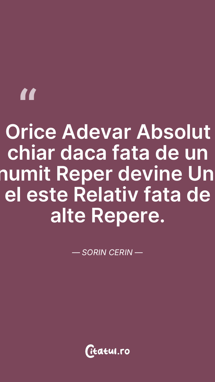 Orice Adevar Absolut chiar daca fata de un anumit Reper devine Unic el este Relativ fata de alte Repere. Sorin Cerin