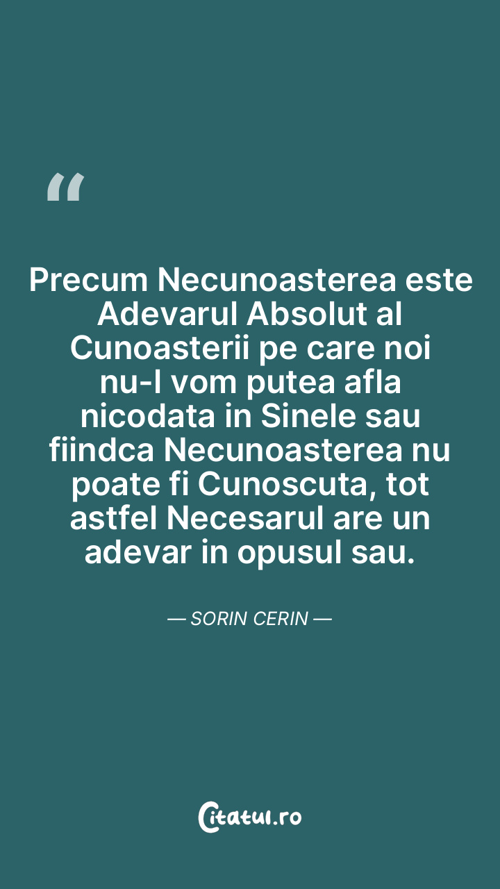 Precum Necunoasterea este Adevarul Absolut al Cunoasterii pe care noi nu-l vom putea afla nicodata in Sinele sau fiindca Necunoasterea nu poate fi Cunoscuta, tot astfel Necesarul are un adevar in opusul sau. Sorin Cerin