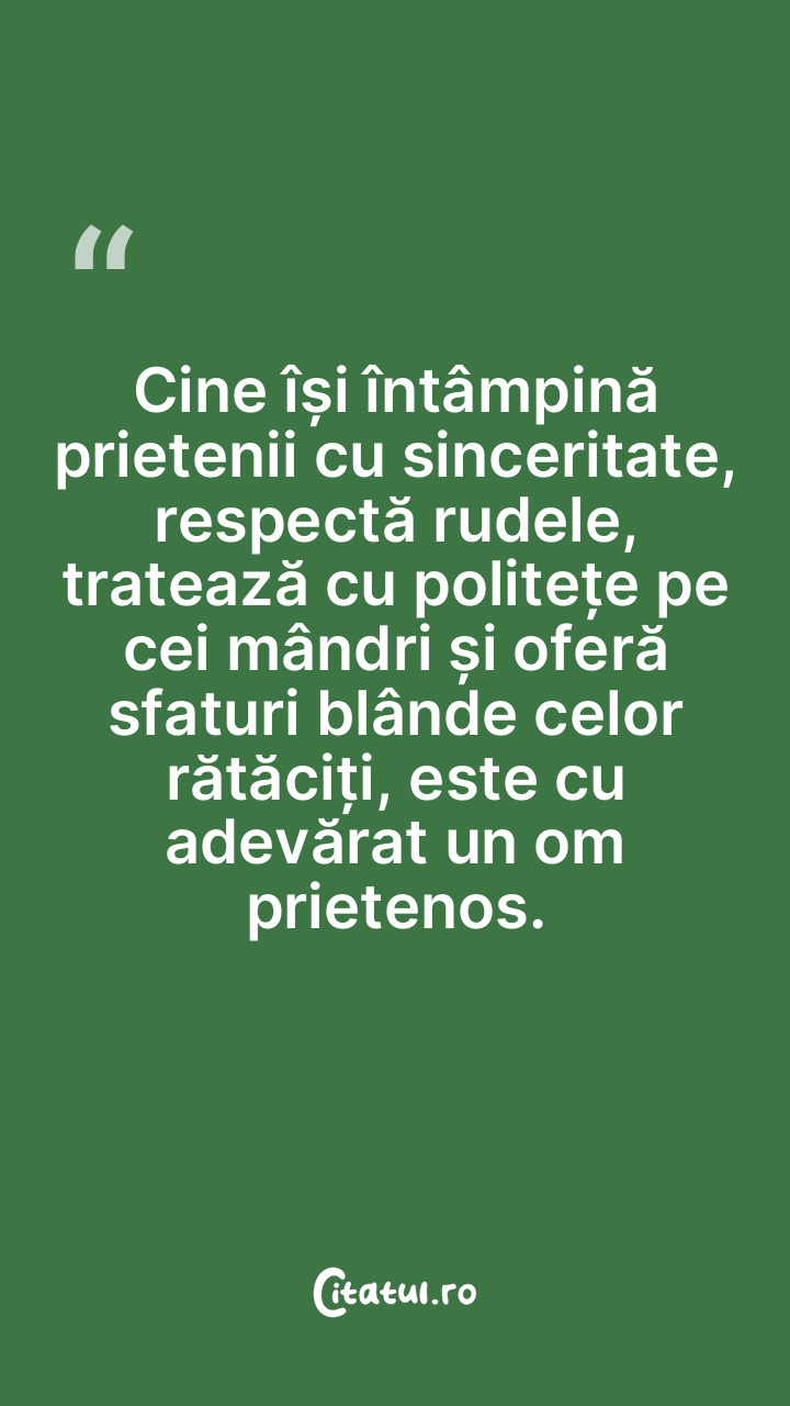 Cine își întâmpină prietenii cu sinceritate, respectă rudele, tratează cu politețe pe cei mândri și oferă sfaturi blânde celor rătăciți, este cu adevărat un om prietenos.