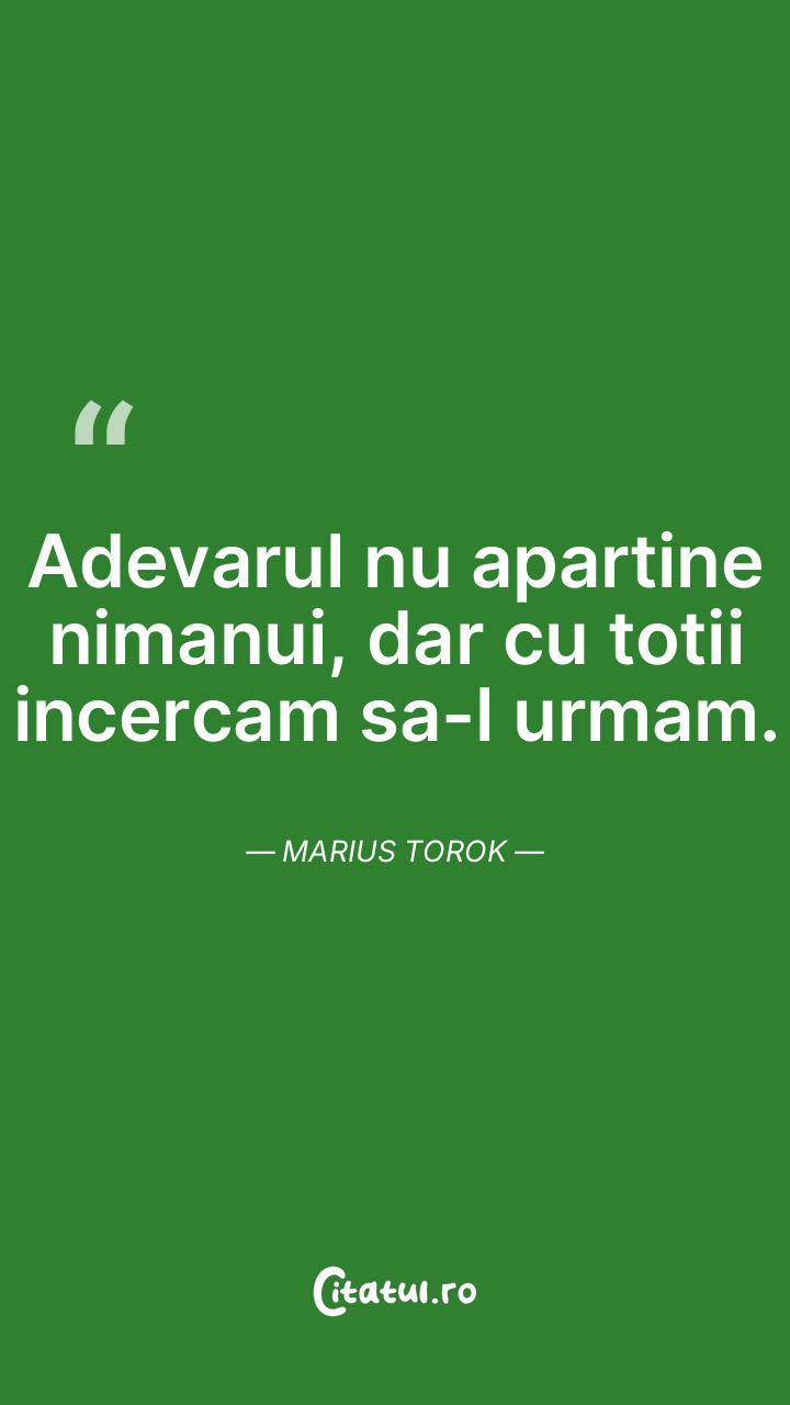 Adevarul nu apartine nimanui, dar cu totii incercam sa-l urmam. Marius Torok