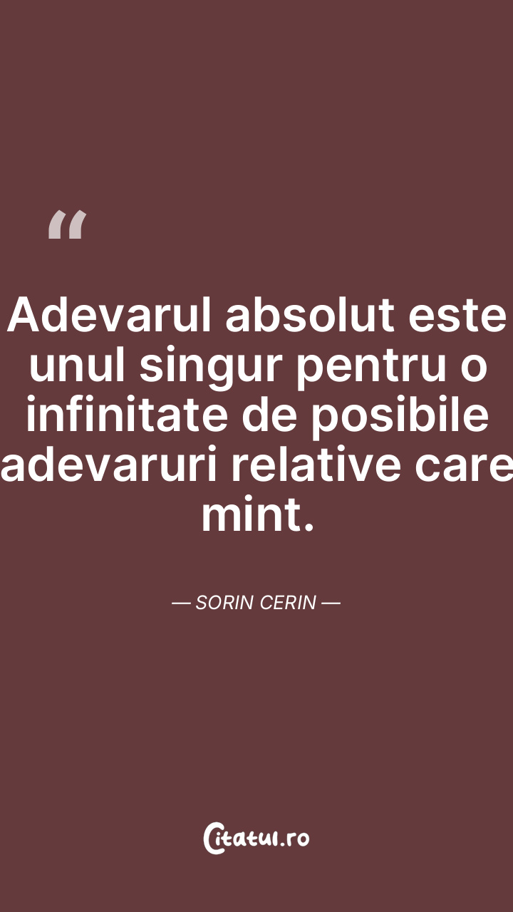 Adevarul absolut este unul singur pentru o infinitate de posibile adevaruri relative care mint. Sorin Cerin