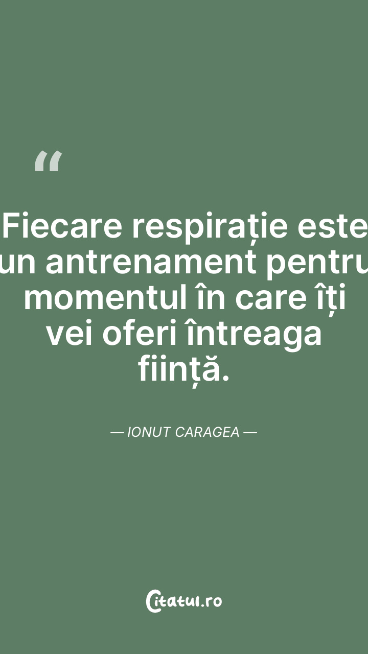 Fiecare respirație este un antrenament pentru momentul în care îți vei oferi întreaga ființă. Ionut Caragea