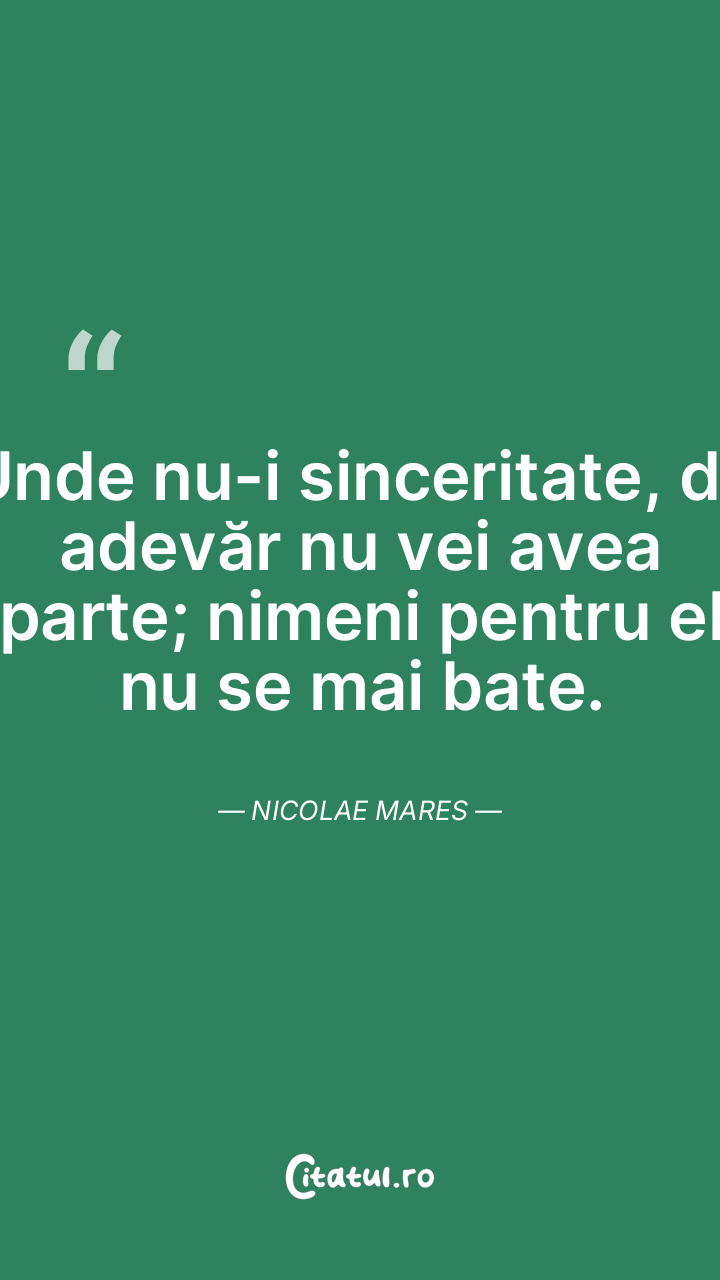 Unde nu-i sinceritate, de adevăr nu vei avea parte; nimeni pentru el nu se mai bate. Nicolae Mares