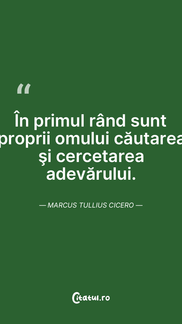 În primul rând sunt proprii omului căutarea şi cercetarea adevărului. Marcus Tullius Cicero