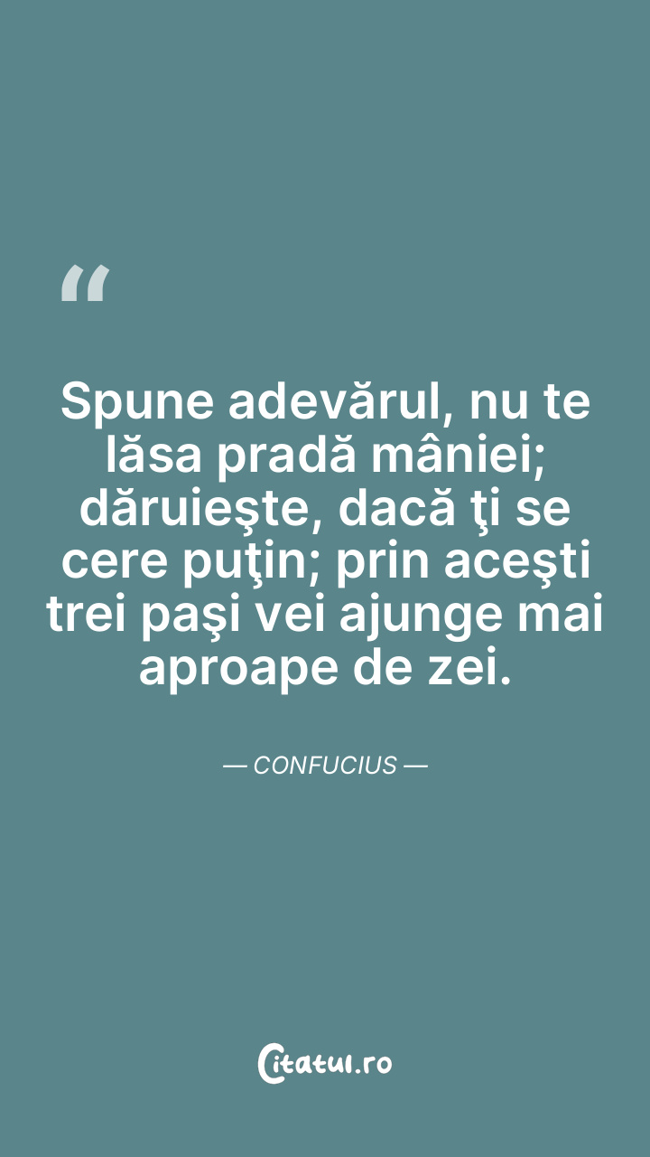 Spune adevărul, nu te lăsa pradă mâniei; dăruieşte, dacă ţi se cere puţin; prin aceşti trei paşi vei ajunge mai aproape de zei. Confucius