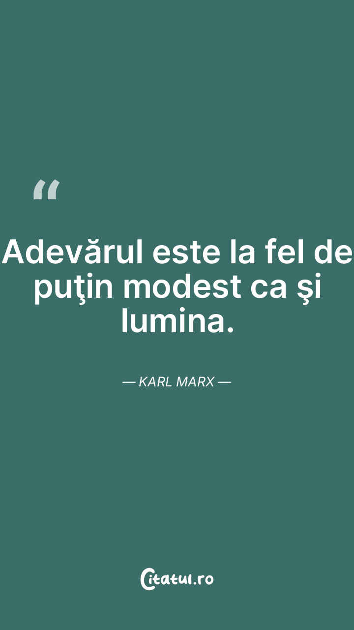Adevărul este la fel de puţin modest ca şi lumina. Karl Marx