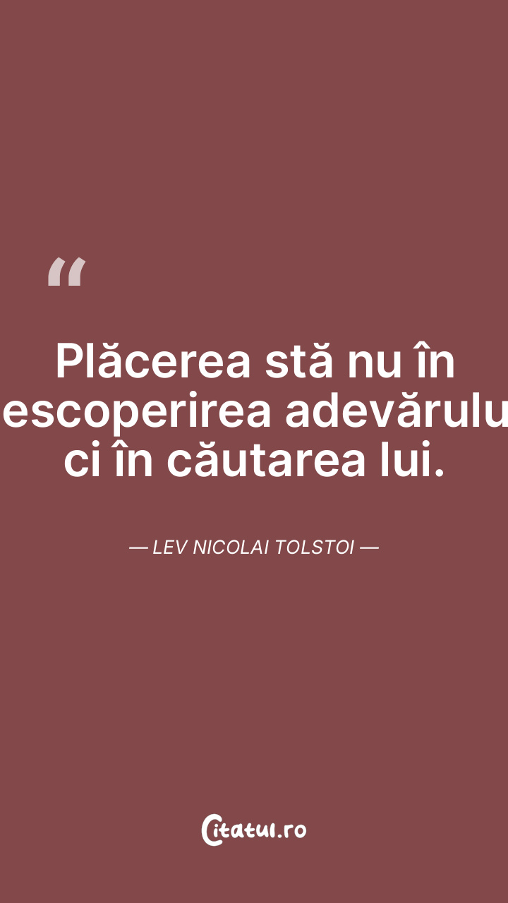 Plăcerea stă nu în descoperirea adevărului, ci în căutarea lui. Lev Nicolai Tolstoi
