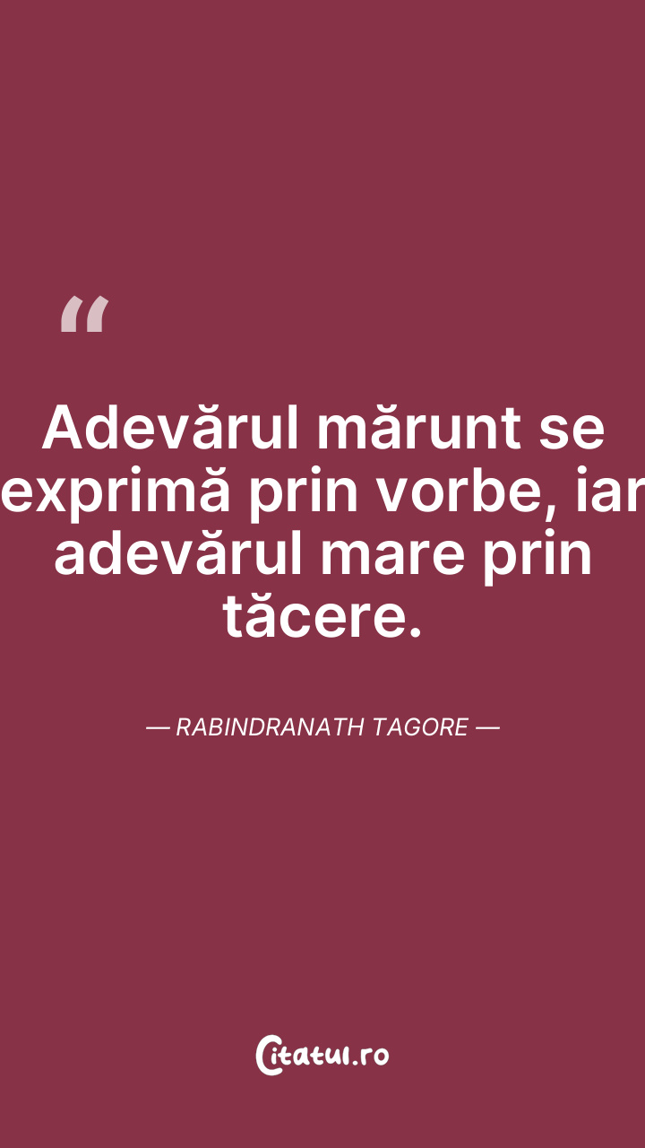 Adevărul mărunt se exprimă prin vorbe, iar adevărul mare prin tăcere. Rabindranath Tagore