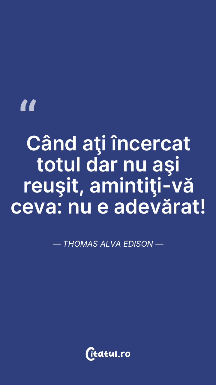 Când aţi încercat totul dar nu aşi reuşit, amintiţi-vă ceva: nu e adevărat! Thomas Alva Edison