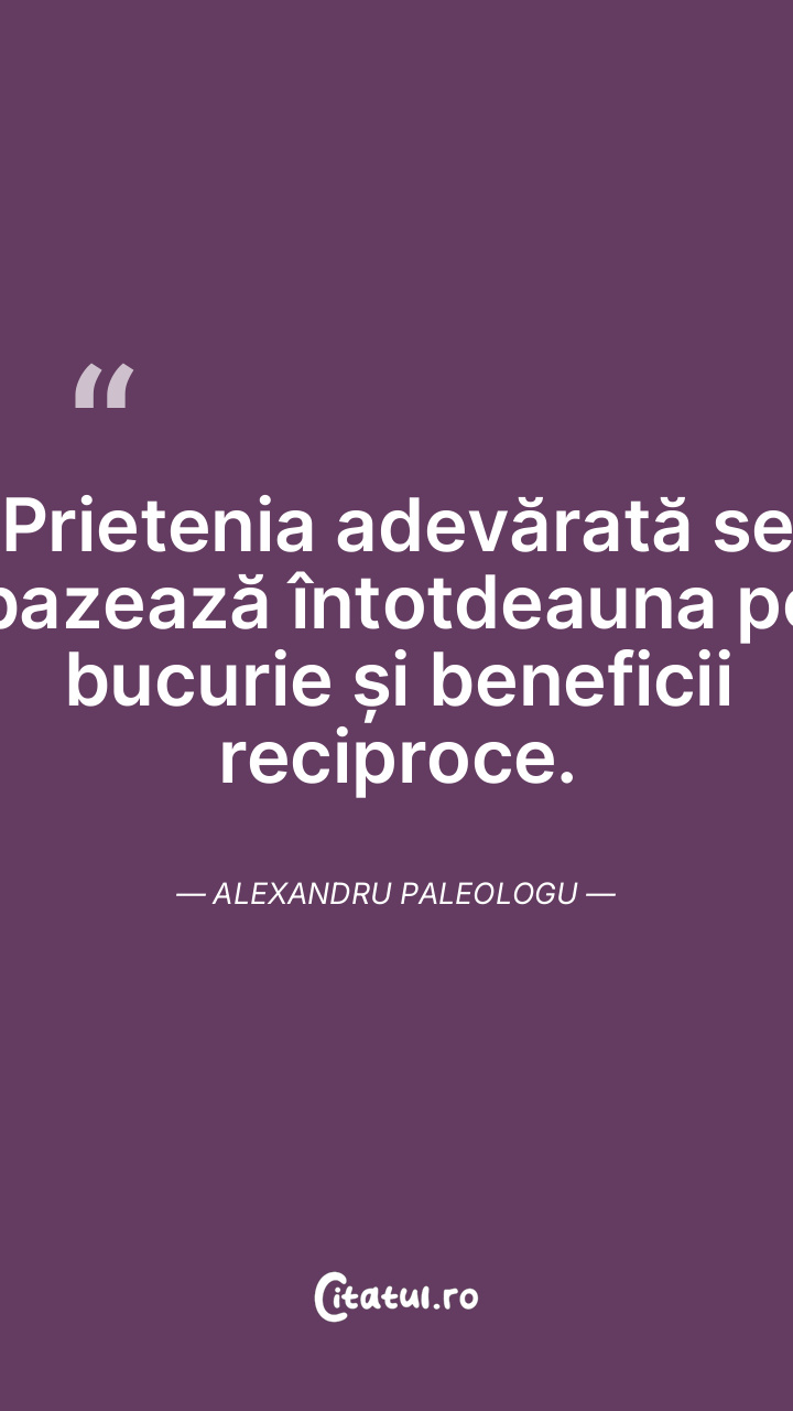 Prietenia adevărată se bazează întotdeauna pe bucurie și beneficii reciproce. Alexandru Paleologu