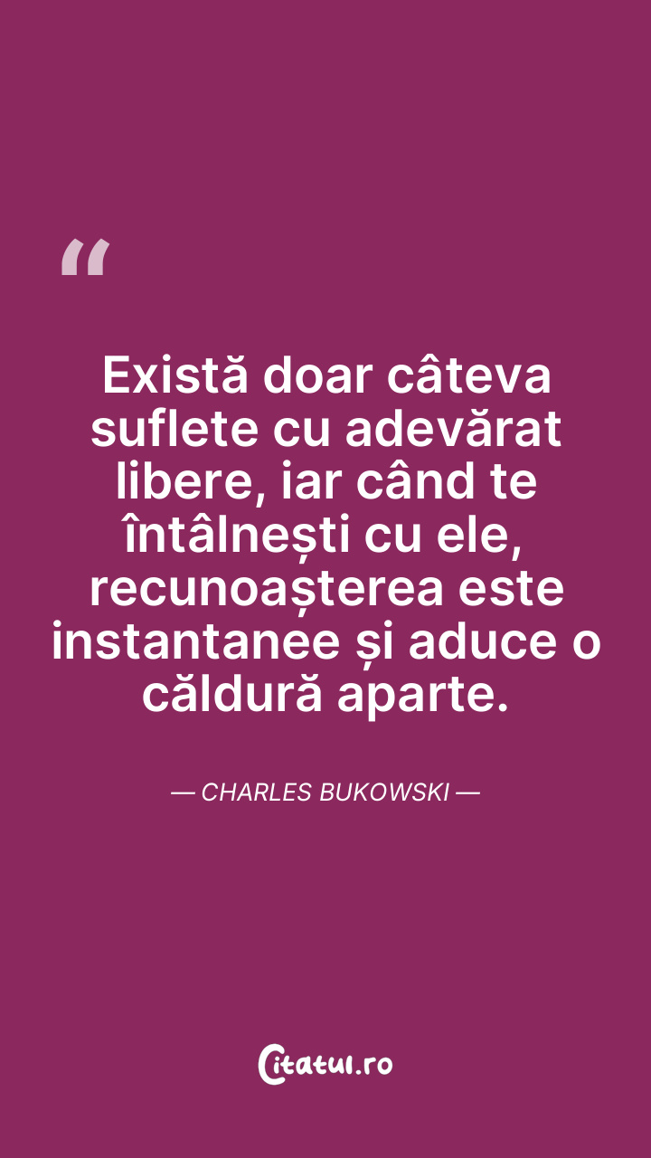 Există doar câteva suflete cu adevărat libere, iar când te întâlnești cu ele, recunoașterea este instantanee și aduce o căldură aparte. Charles Bukowski