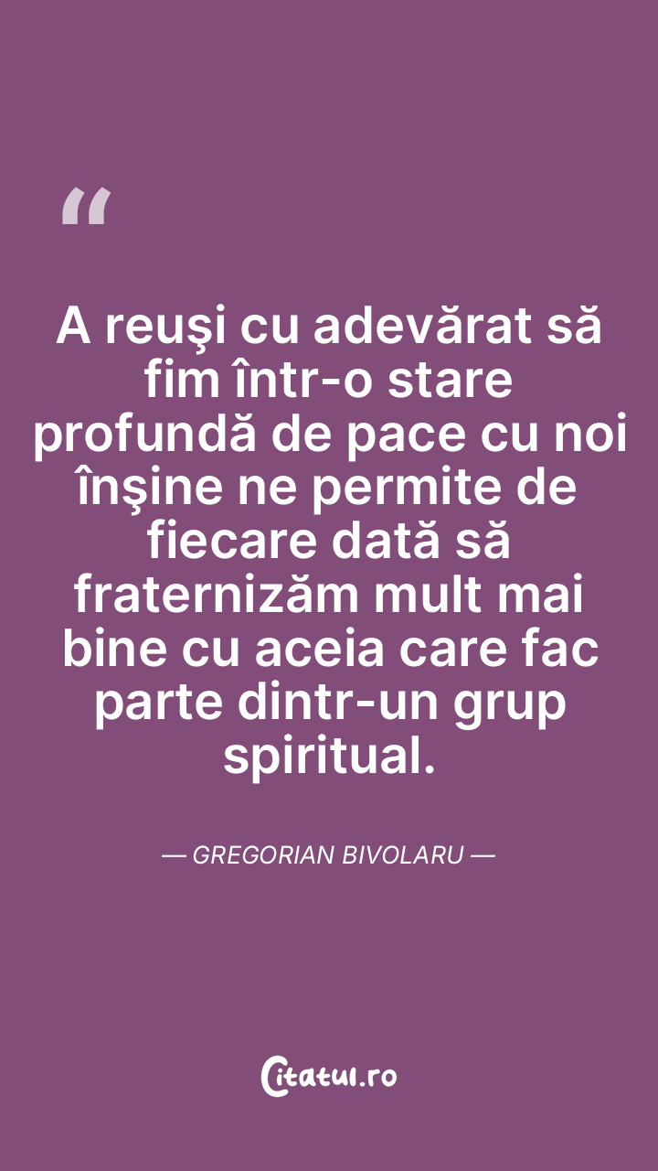 A reuşi cu adevărat să fim într-o stare profundă de pace cu noi înşine ne permite de fiecare dată să fraternizăm mult mai bine cu aceia care fac parte dintr-un grup spiritual. Gregorian Bivolaru