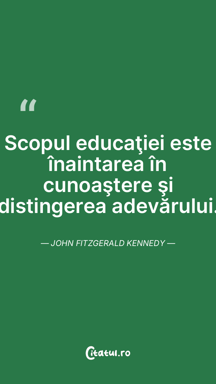 Scopul educaţiei este înaintarea în cunoaştere şi distingerea adevărului. John Fitzgerald Kennedy