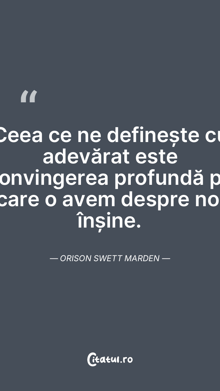 Ceea ce ne definește cu adevărat este convingerea profundă pe care o avem despre noi înșine. Orison Swett Marden