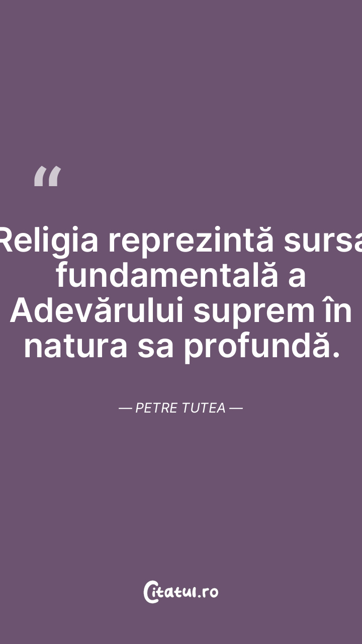 Religia reprezintă sursa fundamentală a Adevărului suprem în natura sa profundă. Petre Tutea
