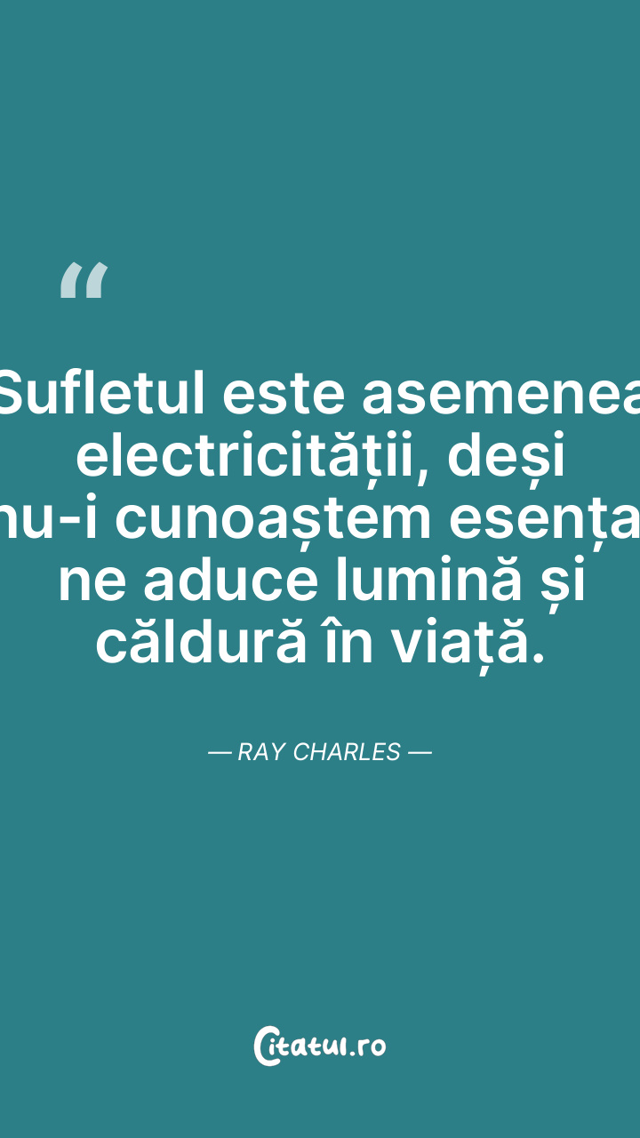 Sufletul este asemenea electricității, deși nu-i cunoaștem esența, ne aduce lumină și căldură în viață. Ray Charles
