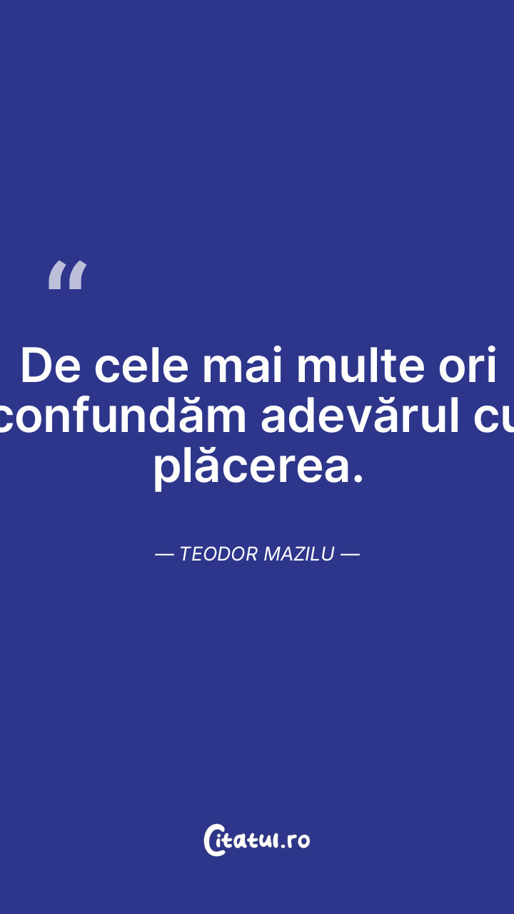 De cele mai multe ori confundăm adevărul cu plăcerea. Teodor Mazilu