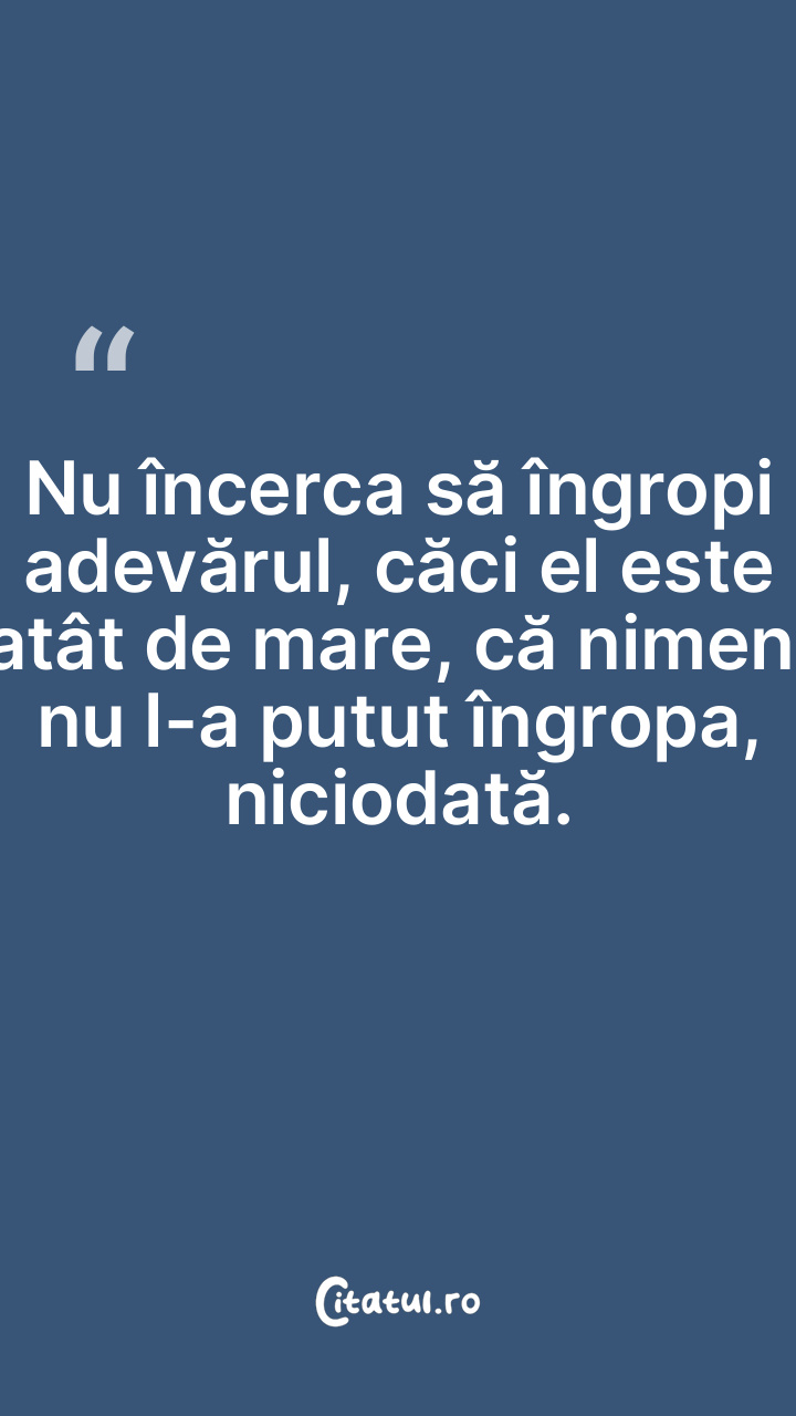 Nu încerca să îngropi adevărul, căci el este atât de mare, că nimeni nu l-a putut îngropa, niciodată.