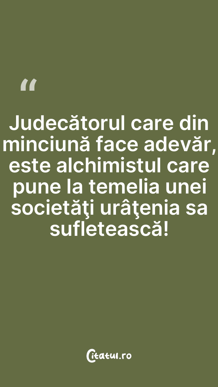 Judecătorul care din minciună face adevăr, este alchimistul care pune la temelia unei societăţi urâţenia sa sufletească!