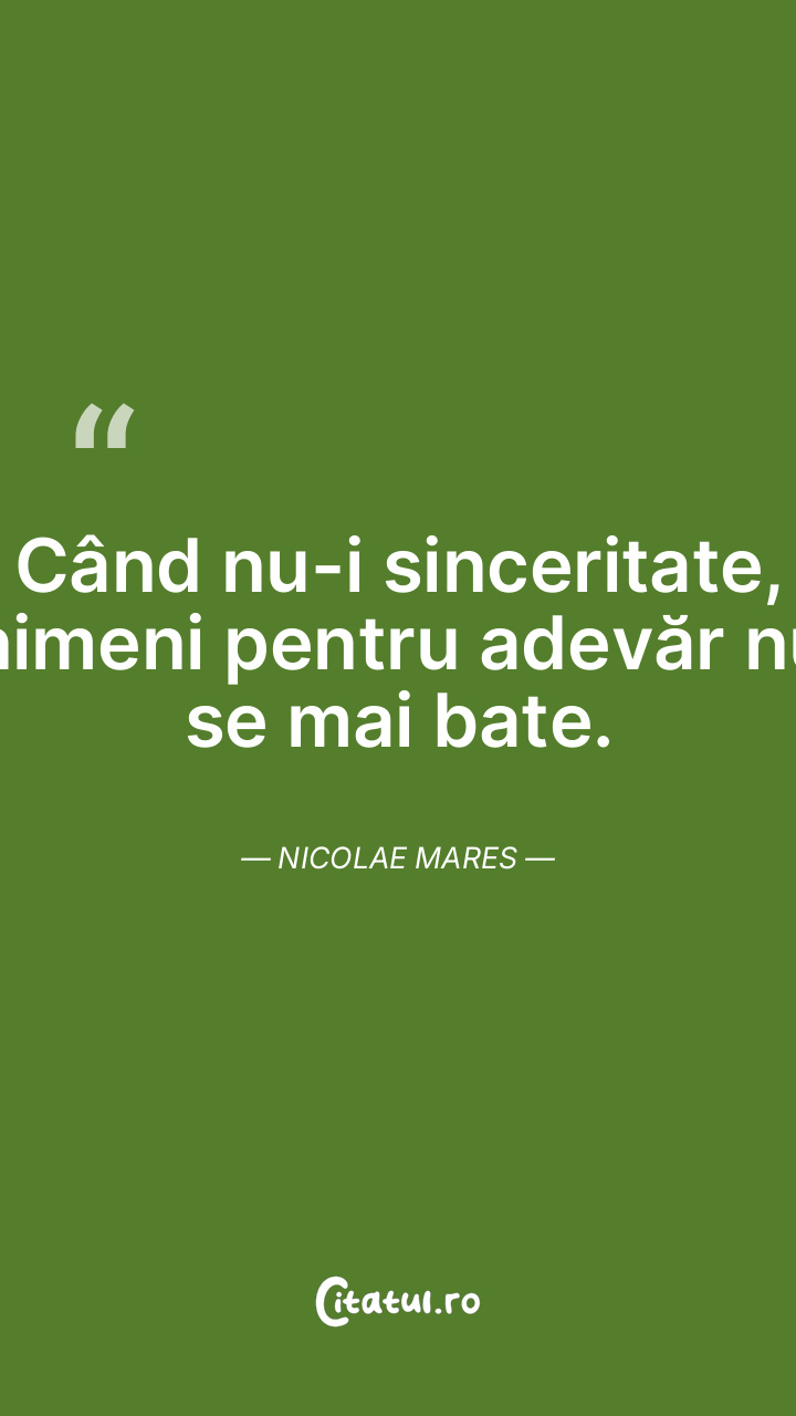 Când nu-i sinceritate, nimeni pentru adevăr nu se mai bate. Nicolae Mares