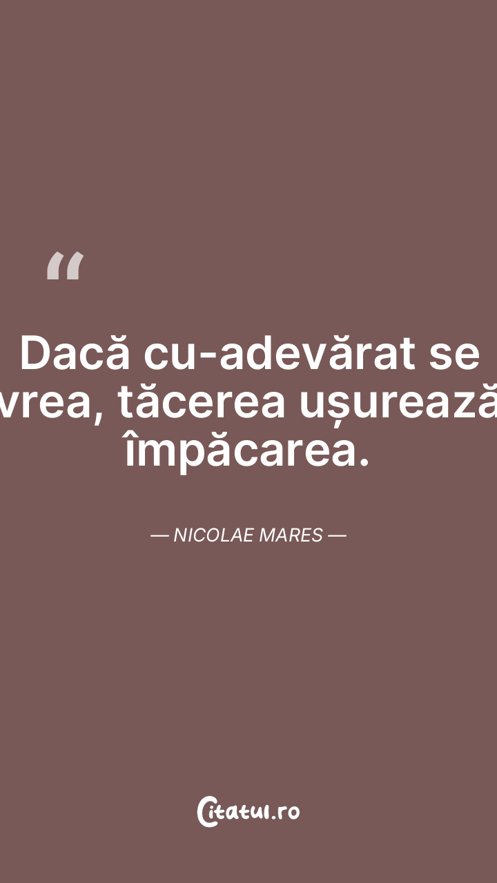Dacă cu-adevărat se vrea, tăcerea ușurează împăcarea. Nicolae Mares