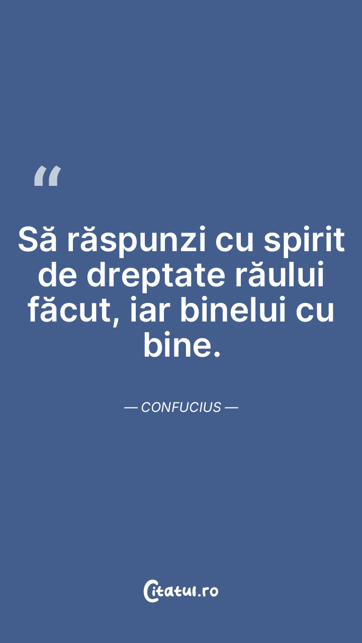 Să răspunzi cu spirit de dreptate răului făcut, iar binelui cu bine. Confucius