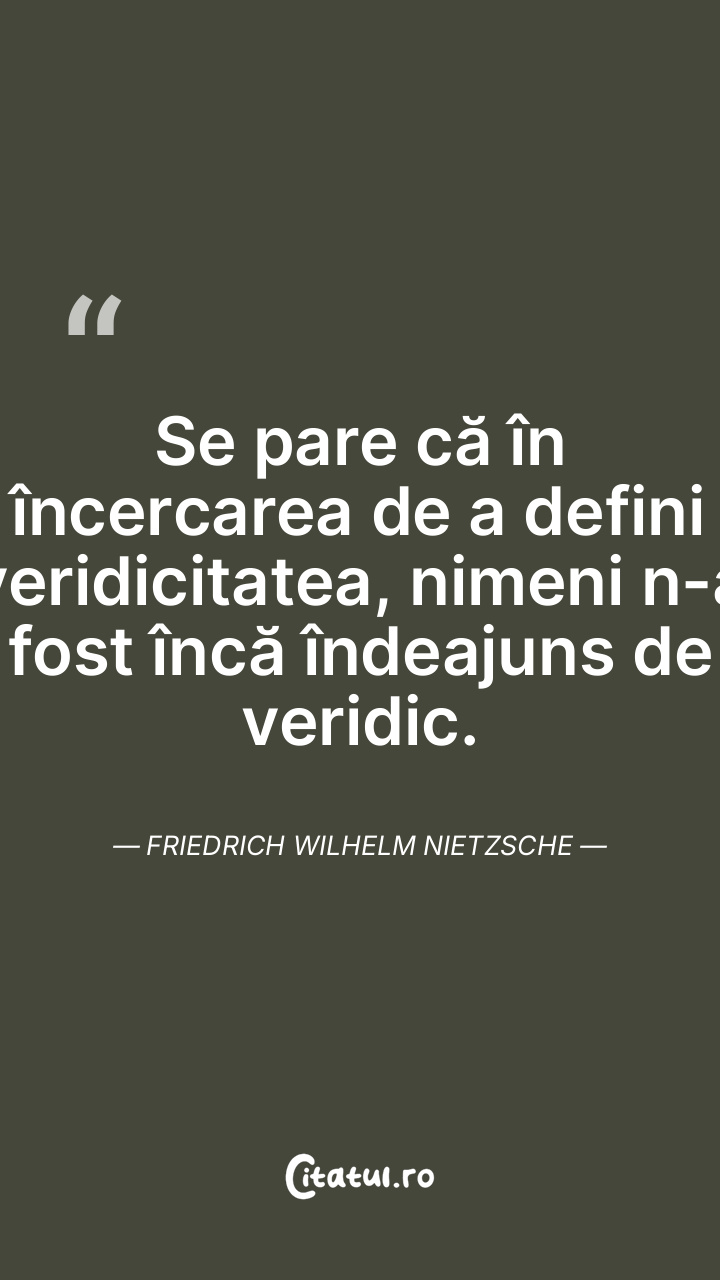 Se pare că în încercarea de a defini veridicitatea, nimeni n-a fost încă îndeajuns de veridic. Friedrich Wilhelm Nietzsche