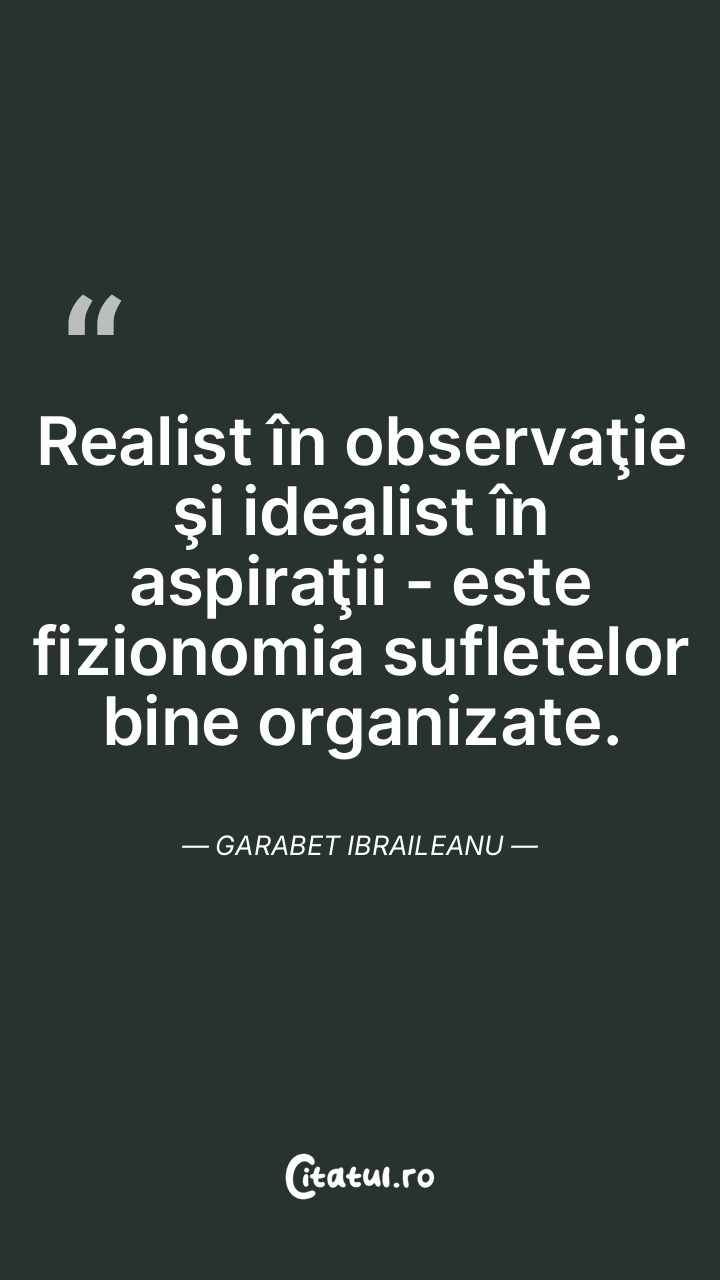 Realist în observaţie şi idealist în aspiraţii - este fizionomia sufletelor bine organizate. Garabet Ibraileanu