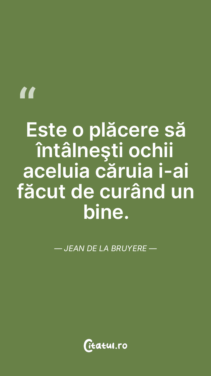 Este o plăcere să întâlneşti ochii aceluia căruia i-ai făcut de curând un bine. Jean de La Bruyere