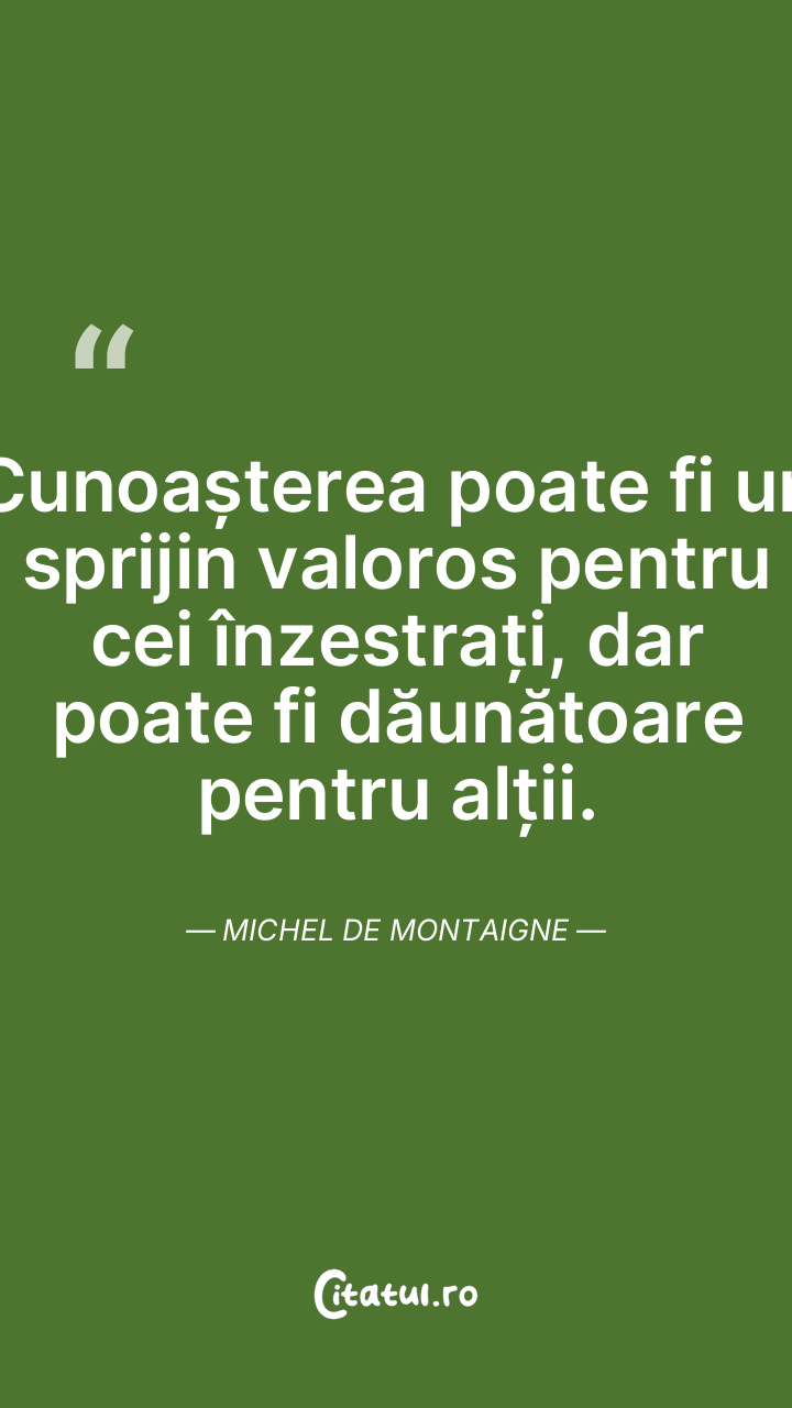 Cunoașterea poate fi un sprijin valoros pentru cei înzestrați, dar poate fi dăunătoare pentru alții. Michel de Montaigne