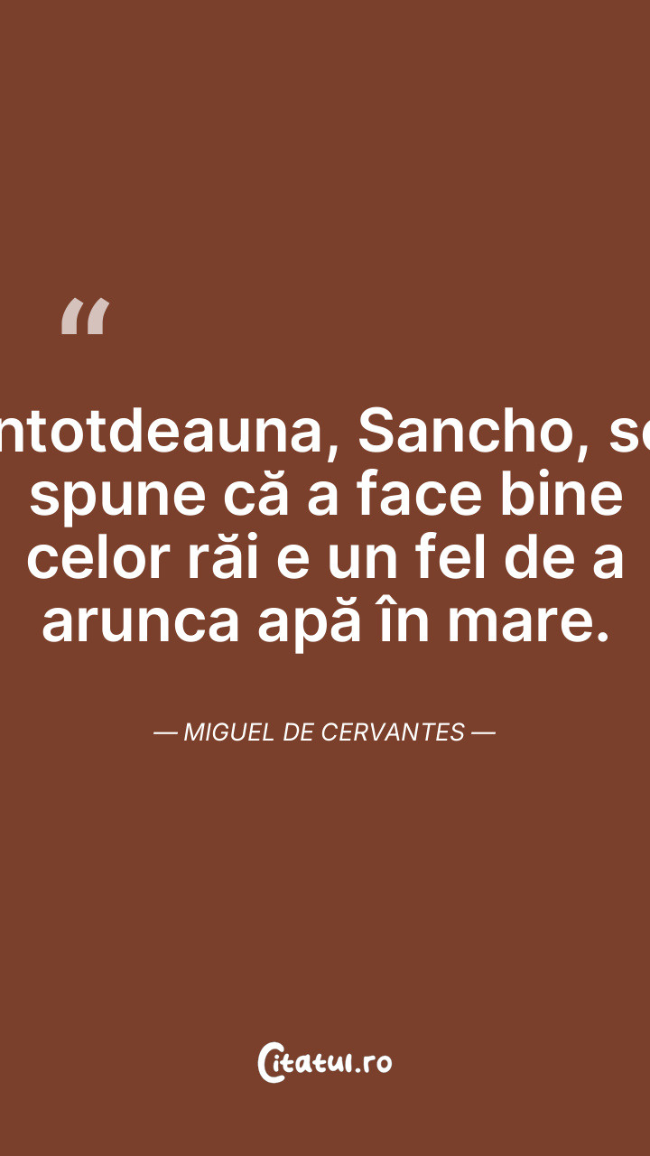 Întotdeauna, Sancho, se spune că a face bine celor răi e un fel de a arunca apă în mare. Miguel de Cervantes