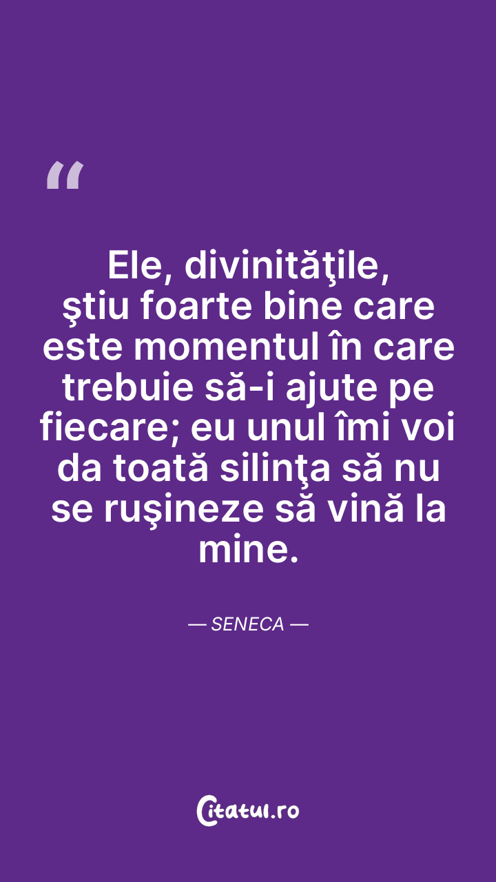 Ele, divinităţile, ştiu foarte bine care este momentul în care trebuie să-i ajute pe fiecare; eu unul îmi voi da toată silinţa să nu se ruşineze să vină la mine. Seneca