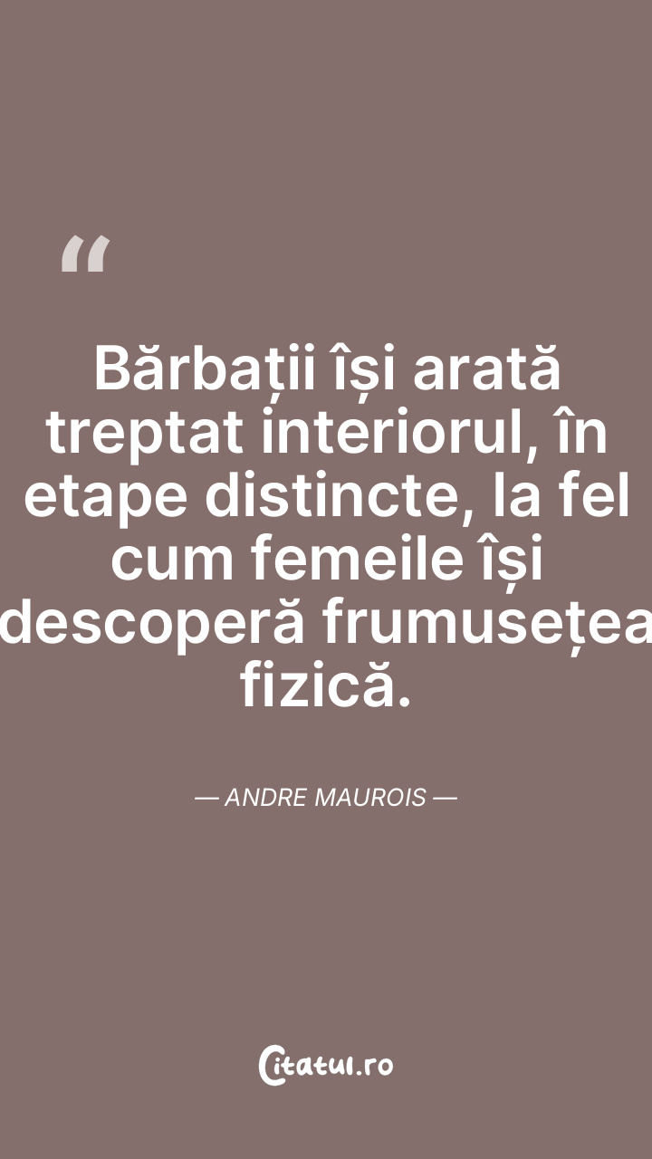 Bărbații își arată treptat interiorul, în etape distincte, la fel cum femeile își descoperă frumusețea fizică. Andre Maurois