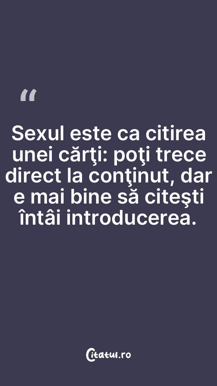 Sexul este ca citirea unei cărţi: poţi trece direct la conţinut, dar e mai bine să citeşti întâi introducerea.