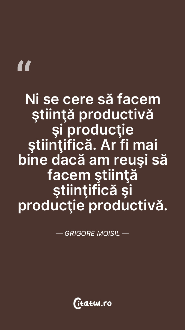 Ni se cere să facem ştiinţă productivă şi producţie ştiinţifică. Ar fi mai bine dacă am reuşi să facem ştiinţă ştiinţifică şi producţie productivă. Grigore Moisil