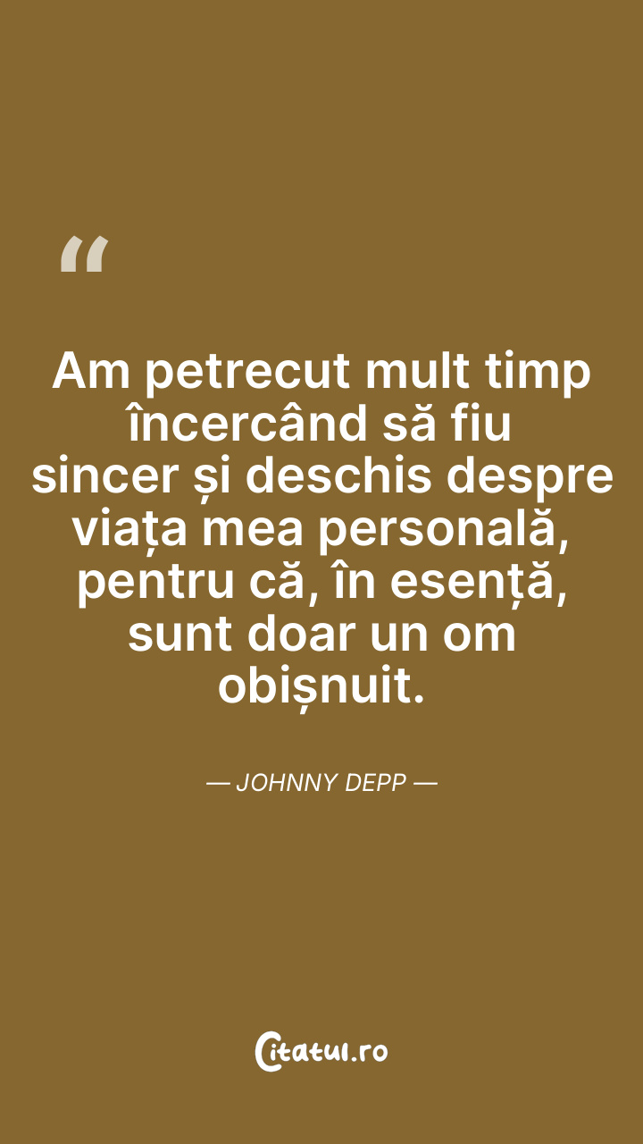 Am petrecut mult timp încercând să fiu sincer și deschis despre viața mea personală, pentru că, în esență, sunt doar un om obișnuit. Johnny Depp