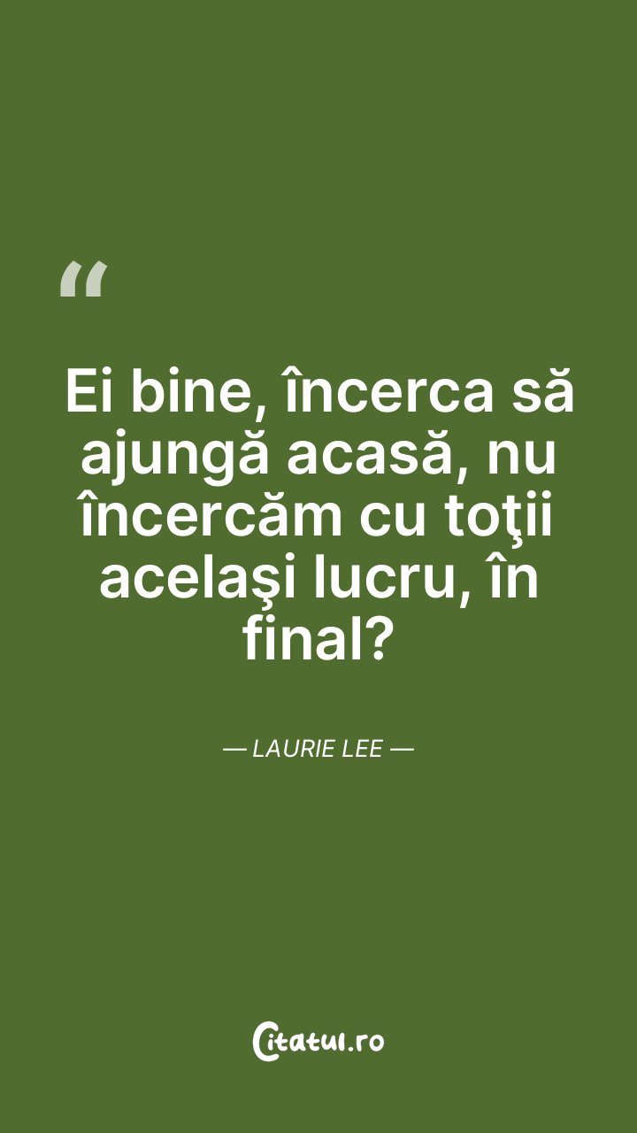 Ei bine, încerca să ajungă acasă, nu încercăm cu toţii acelaşi lucru, în final? Laurie Lee