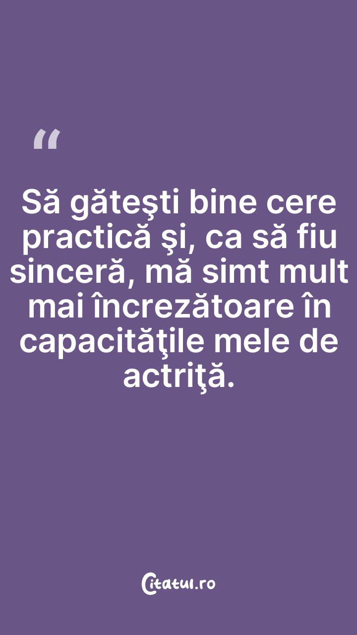Să găteşti bine cere practică şi, ca să fiu sinceră, mă simt mult mai încrezătoare în capacităţile mele de actriţă.
