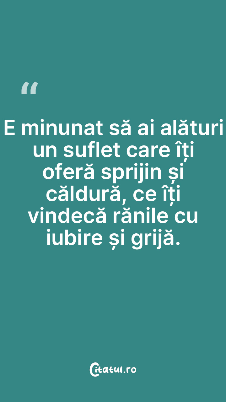 E minunat să ai alături un suflet care îți oferă sprijin și căldură, ce îți vindecă rănile cu iubire și grijă.