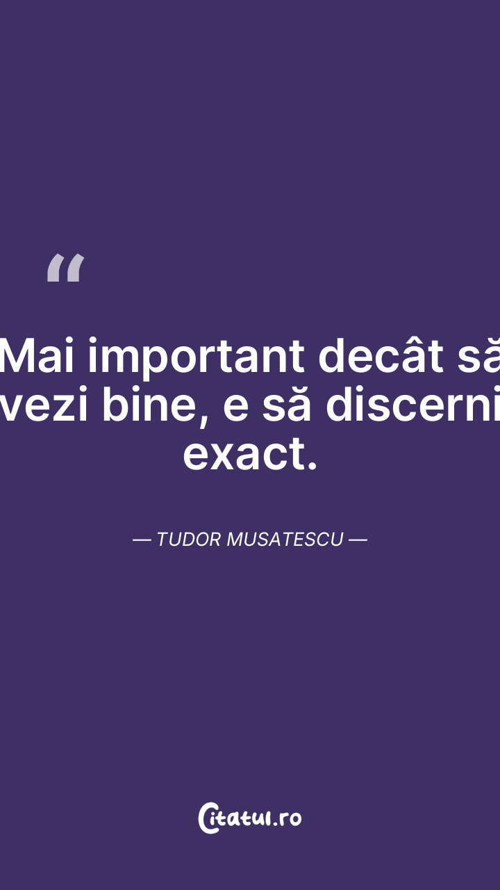 Mai important decât să vezi bine, e să discerni exact. Tudor Musatescu