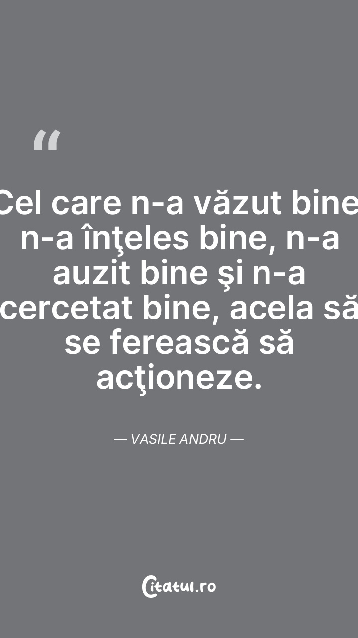 Cel care n-a văzut bine, n-a înţeles bine, n-a auzit bine şi n-a cercetat bine, acela să se ferească să acţioneze. Vasile Andru