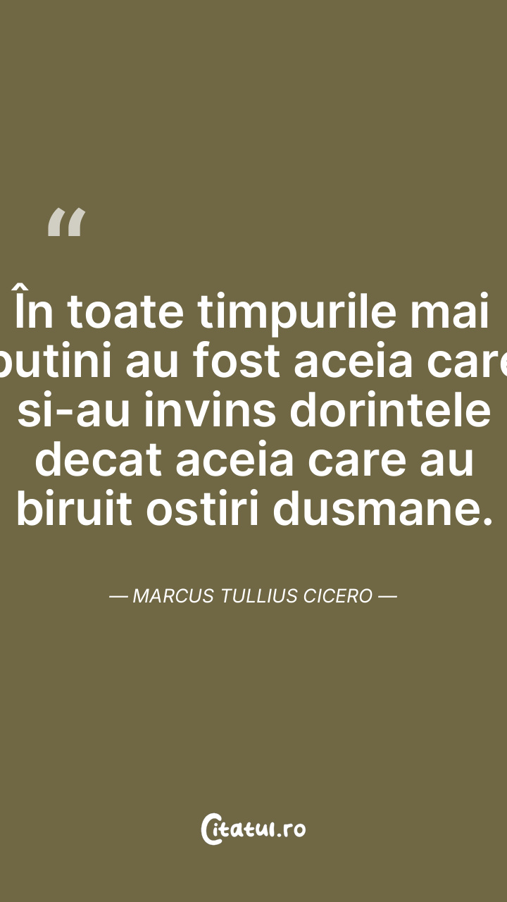 În toate timpurile mai putini au fost aceia care si-au invins dorintele decat aceia care au biruit ostiri dusmane. Marcus Tullius Cicero